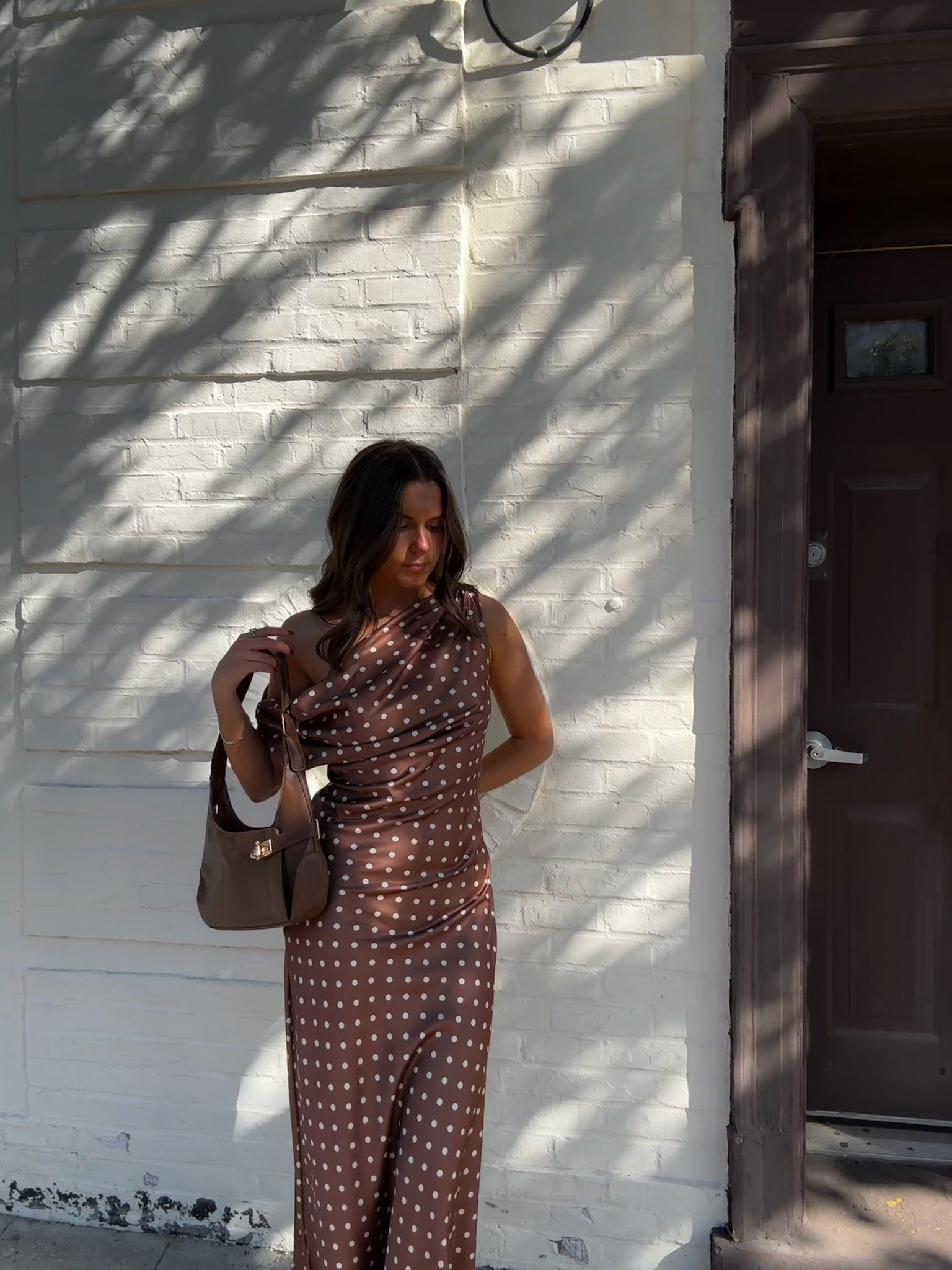 Woven Polyester Satin Polka Dot Cowl Neck Sleeveless Flare Maxi Dress With Rayon Lining And Side Zipper