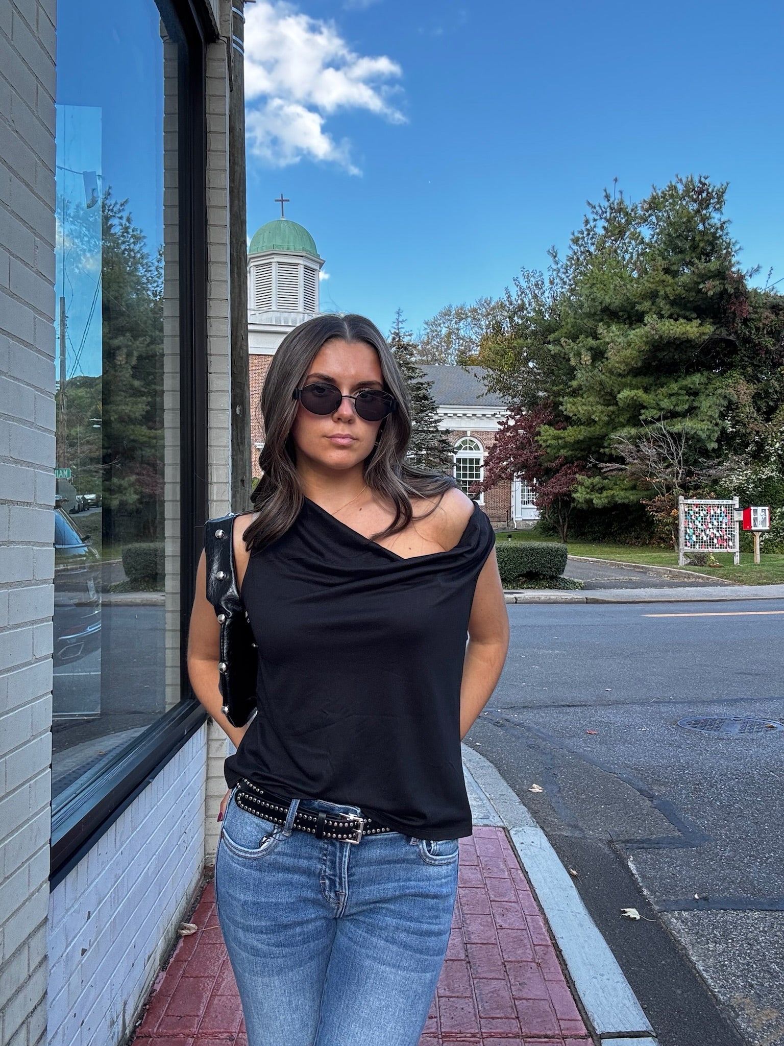 Knit Polyester Spandex Sleeveless Cowl Neck Top