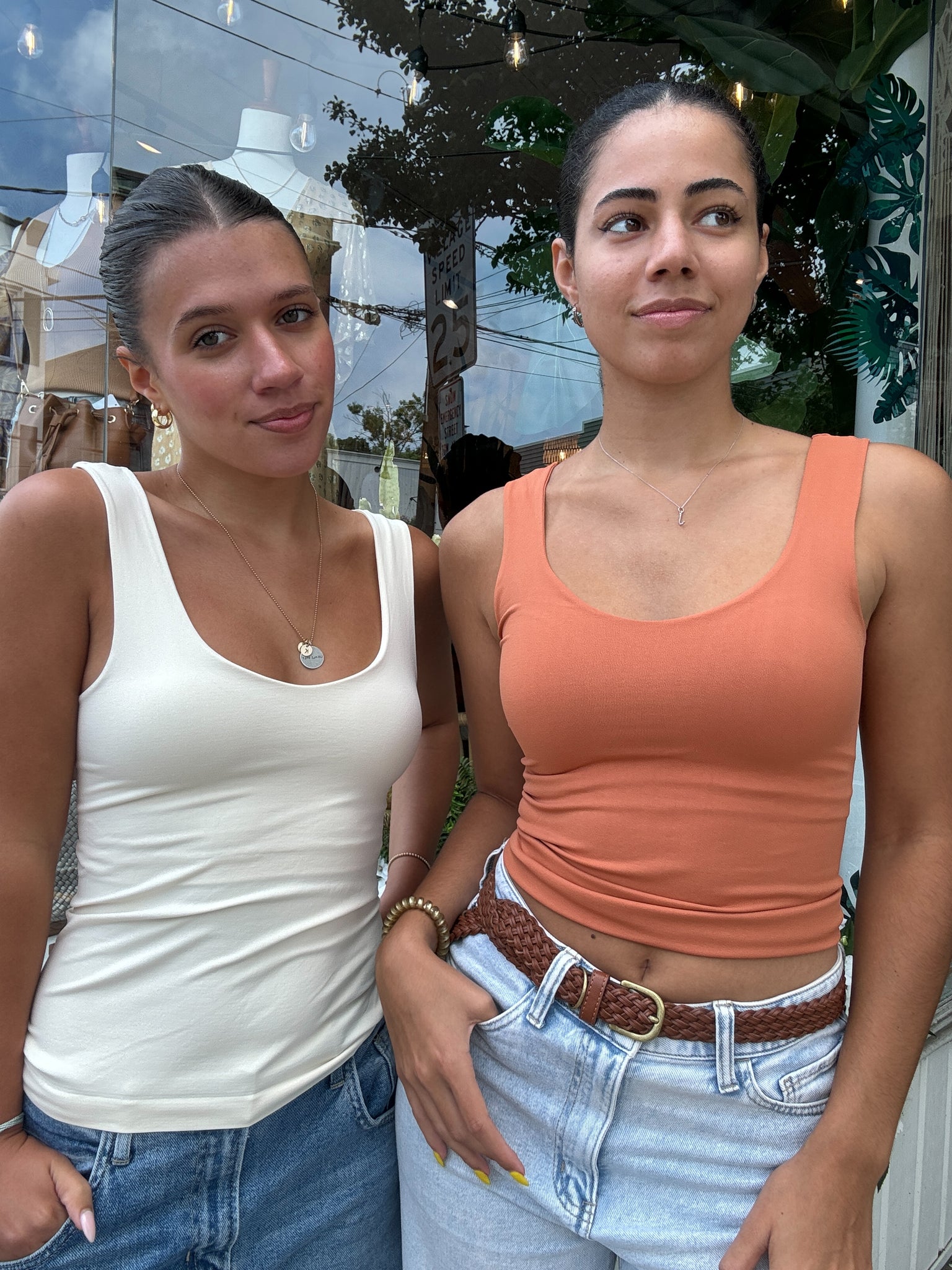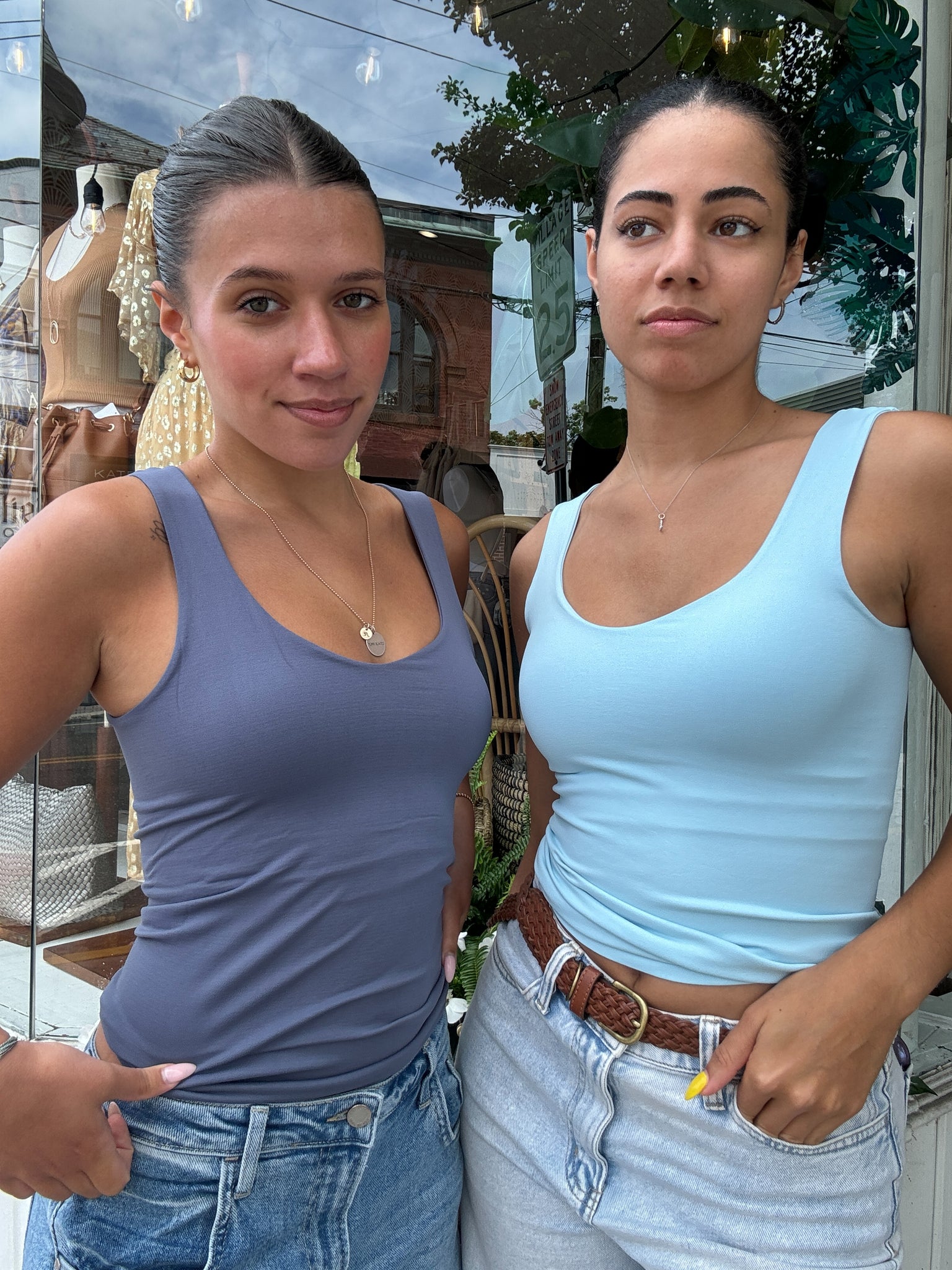 This top is a sleek, fitted tank top buttery soft that offers a streamlined and versatile look-built in bra
