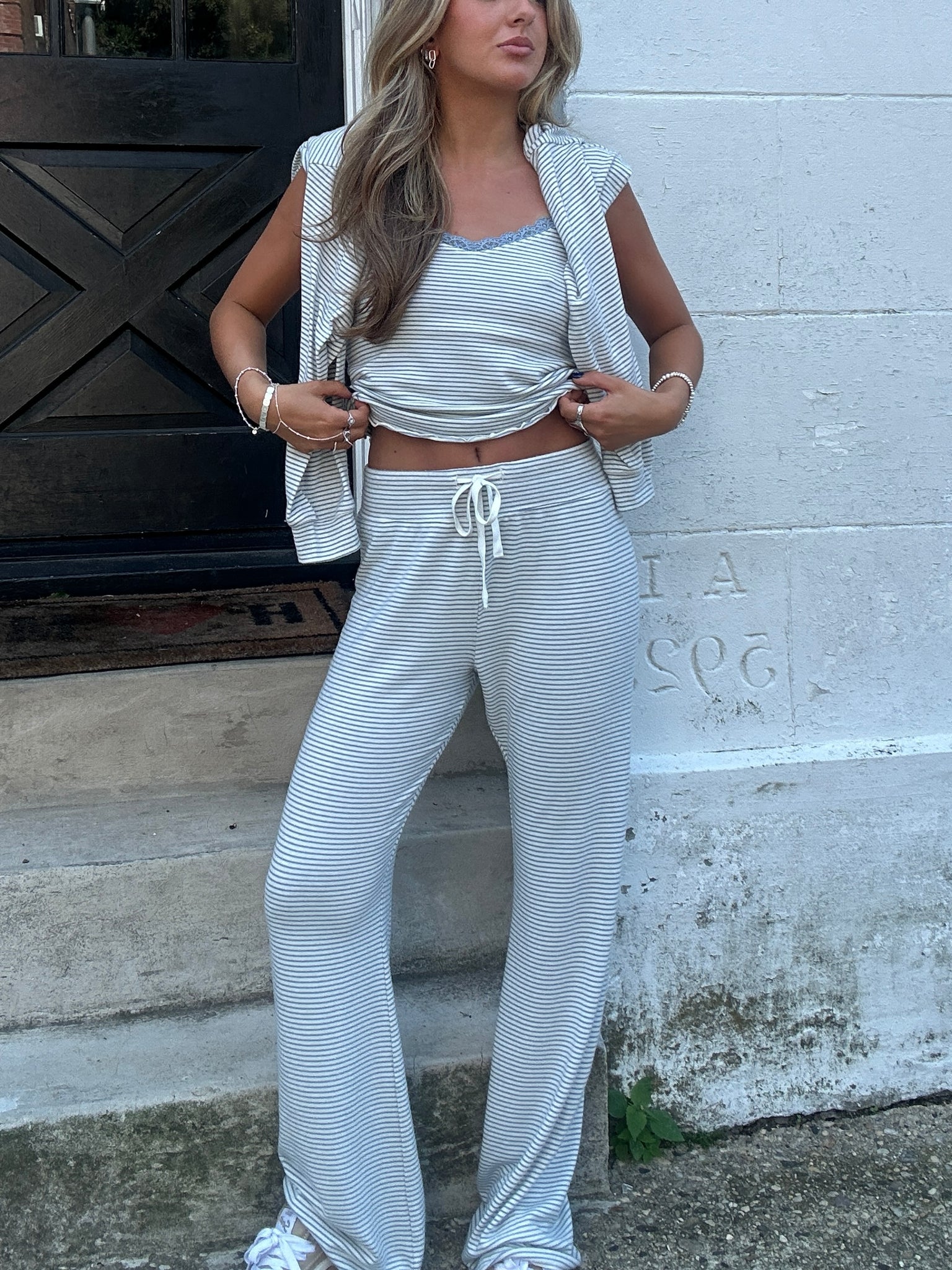 Slip into softness with these wide-leg lounge pants, crafted from our brushed stripe sweater knit for a cozy feel and relaxed fit. Featuring a classic stripe, they’re made for slow mornings, late nights, and everything in between.